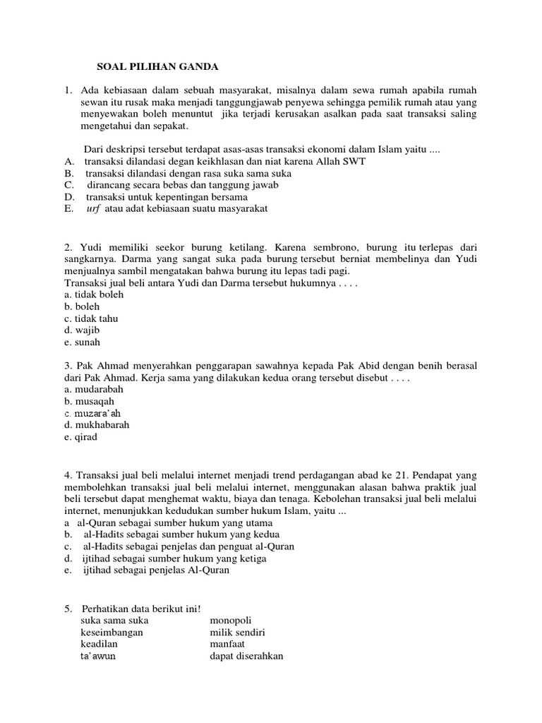Soal Pilihan Ganda Ekonomi Islam